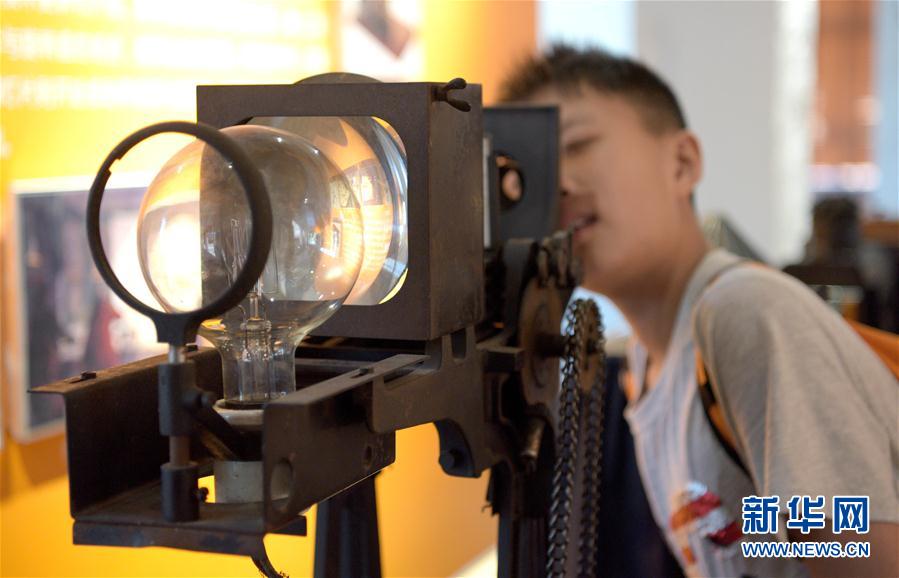 2019年8月29日,參觀者在西影電影藝術體驗中心參觀展出的老式幻燈機。當日,陝西省西安市西影電影藝術體驗中心正式對外開放。 新華社記者 劉瀟 攝