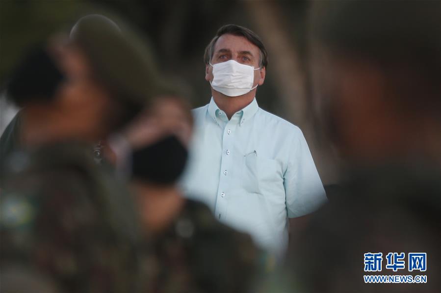 7月22日,巴西總統博索納羅在首都巴西利亞的總統官邸參加升旗儀式。 巴西總統府22日宣布,總統博索納羅21日接受的新冠病毒檢測結果依然呈陽性,但目前身體狀況良好。7月7日,博索納羅宣布自己感染新冠病毒,隨后在醫學團隊的陪伴下於總統官邸辦公。 新華社發(盧西奧·塔沃拉攝)