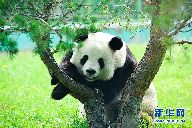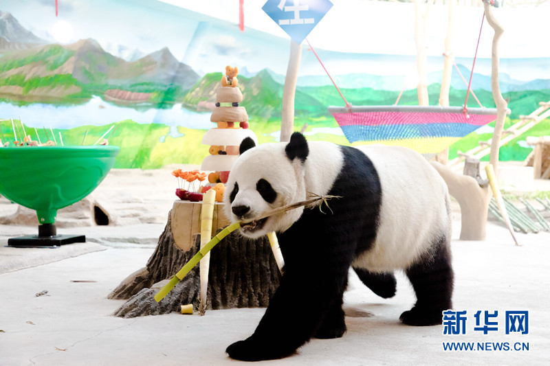 憨態可掬的大熊貓思嘉。新華網發(亞布力熊貓館提供)