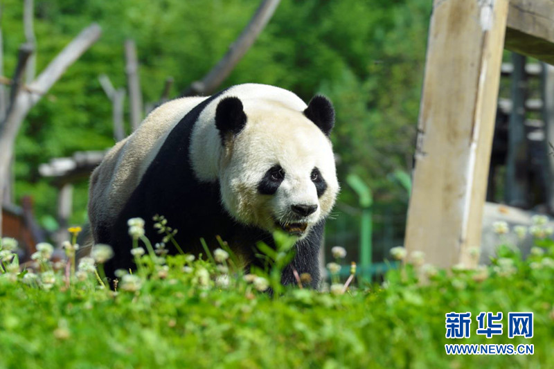大熊貓思嘉在戶外活動。新華網發(亞布力熊貓館提供)