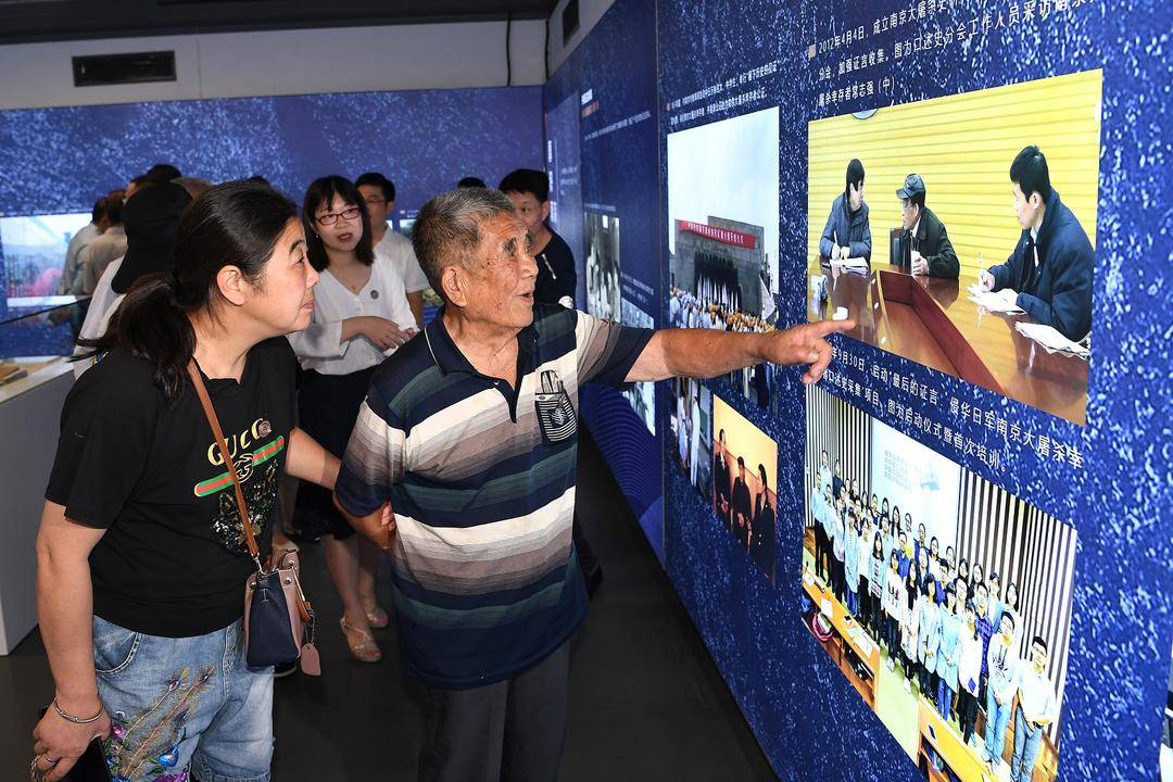 在展覽現場,一位白發老人邊觀看展覽邊和周邊的參觀者講述著當時的一些故事,據了解,這位87歲老人就是紀念館原副館長段月萍,也是1984年籌建紀念館時的小組成員。段奶奶在展板上看到自己1984年和其他編史組成員的合影,感慨道:“35年經過幾代紀念館人接續努力,紀念館變化很大,願我們共同建設的這個紀念館越來越好。”她說,紀念館從建館起就不是孤立的事,而是與國家的命運緊緊聯系在一起,希望一代代年輕人把歷史真相維護好、傳承好。