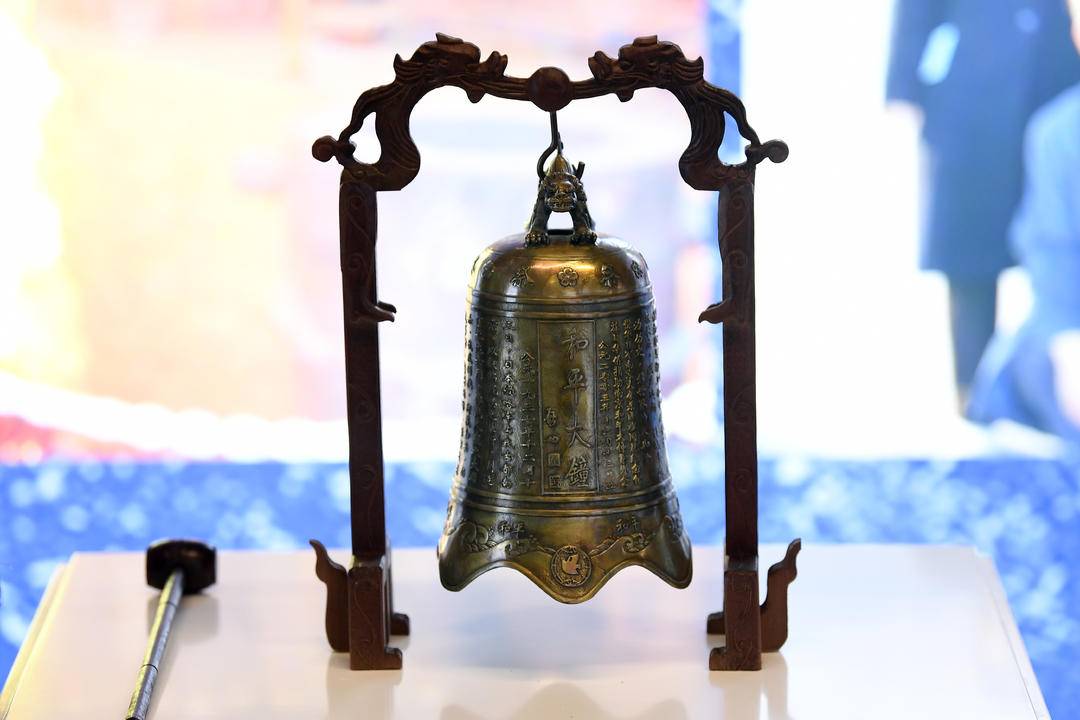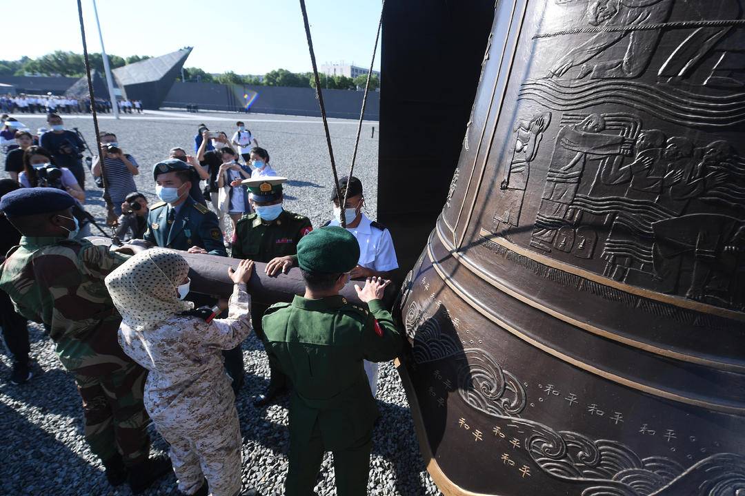 侵華日軍南京大屠殺遇難同胞紀念館建館35周年回顧展開幕,見証者敲響和平鐘