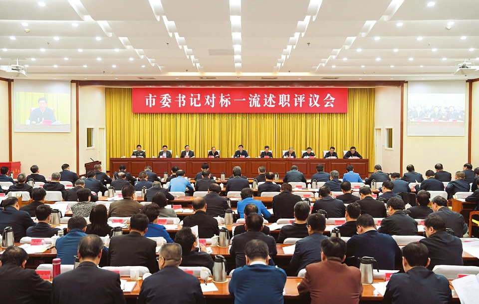 圖為市委書記對標一流述職評議會會場。 本報記者 李聯軍攝