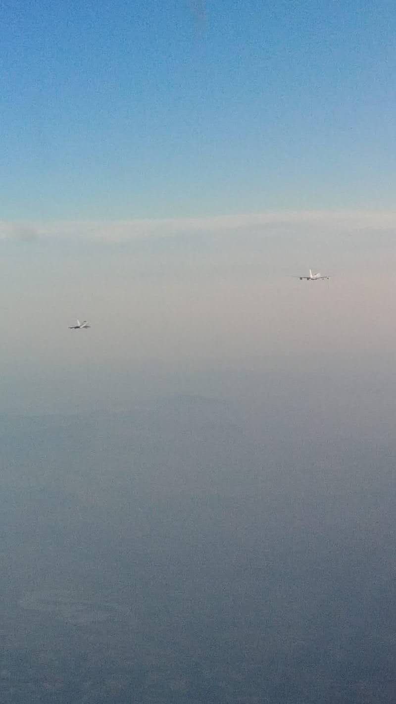 △當專機進入意大利領空時,2架意大利空軍戰機升空護航。