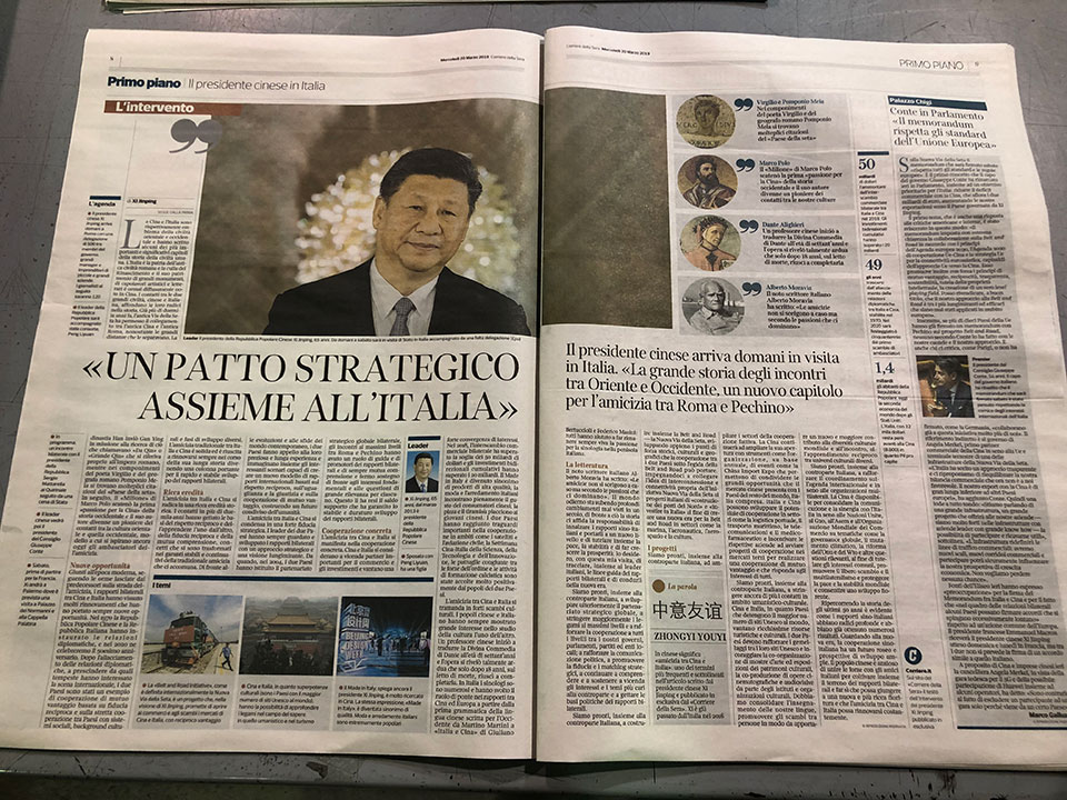 當地時間3月20日,意大利《晚郵報》發表了習近平的一篇署名文章,題為《東西交往傳佳話 中意友誼續新篇》。
