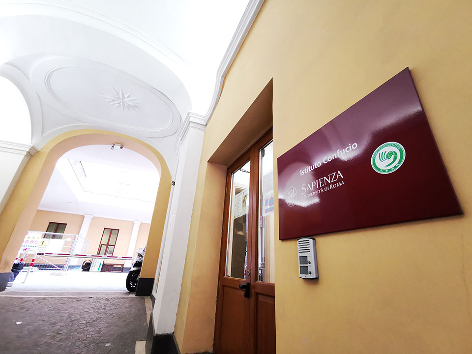 △意大利羅馬大學和孔子學院。目前,意大利已開設12所孔子學院和41個孔子課堂,十余年來累計學員近23萬人。(央視記者張曉鵬拍攝)