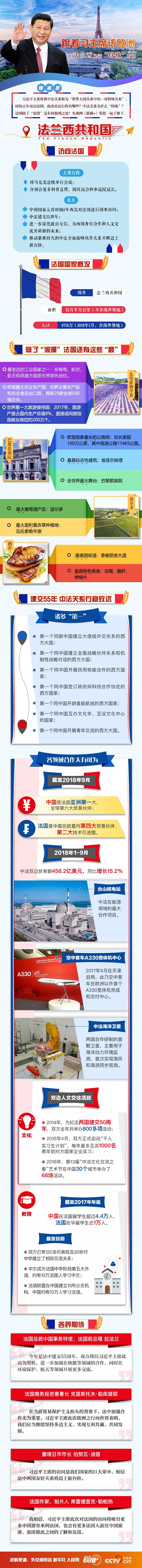中法建交以來,兩國堅持相互尊重、求同存異、互利共贏,不斷擴大雙方交往合作,給兩國和兩國人民帶來了實實在在的福祉。習近平主席此次訪法是中國國家元首時隔5年再次對法國進行國事訪問。此訪正值中法建交55周年,對兩國關系具有特殊重要意義。