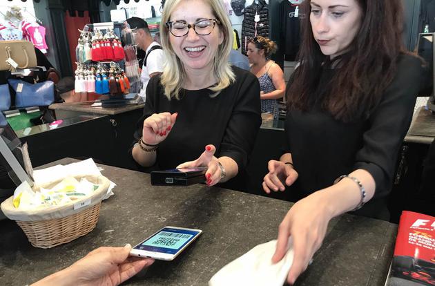 △中國游客正在摩納哥使用支付寶購物。