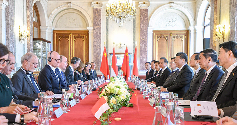 法國是第一個同新中國正式建交的西方大國,今年正逢中法建交55周年。習近平主席向馬克龍總統、菲利普總理等法方領導人強調,法國是最早同中國建立戰略伙伴關系和開展戰略對話、最早同中國開展民用核能合作的國家。中法關系要沿著正確道路走下去,政治互信是關鍵,務實合作是動力,國民感情是基礎。雙方一致同意要打造更加堅實、穩固、富有活力的中法全面戰略伙伴關系,繼續探索獨立自主、相互理解、高瞻遠矚、互利共贏的大國相處之道。雙方發表關於共同維護多邊主義、完善全球治理的聯合聲明,針對當前國際社會面臨的挑戰發出一致聲音。