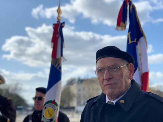 法國老戰士在凱旋門前。新華社記者 高潔 攝