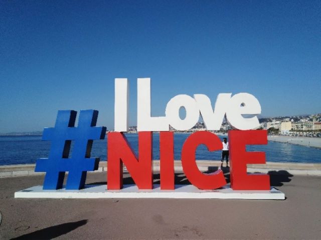 尼斯在恐怖襲擊重創后豎起“我愛尼斯”的標志。2016年7月15日,習近平就尼斯恐襲事件向時任法國總統奧朗德致慰問電。新華社記者 饒愛民 攝
