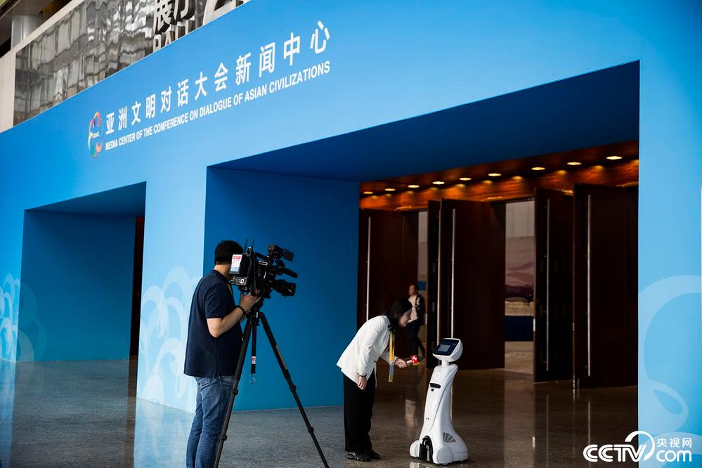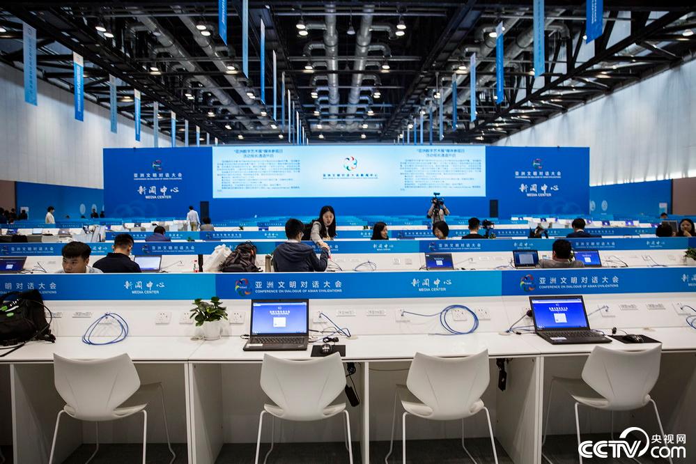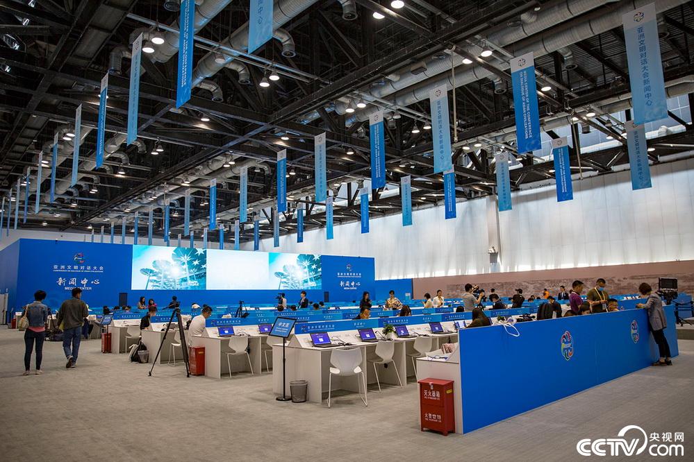 5月14日,位於國家會議中心內的亞洲文明對話大會新聞中心正式運行,為境內外記者提供便捷多元化新聞服務。
