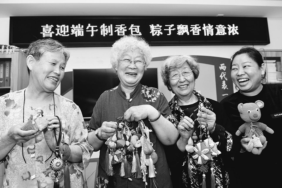 6月5日,太原市老軍營小區第三社區內,來自太原市老年大學的志願者們正為居民展示她們手工完成的端午節香包。當天,該社區舉辦“粽子飄香迎端午,互助友愛助創城”主題活動,志願者和居民們一起包粽子、做香包,歡聲笑語迎端午。