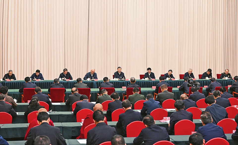 八月二十日下午,率中央代表團出席西藏自治區成立六十周年慶祝活動的中共中央總書記、國家主席、中央軍委主席習近平在拉薩聽取西藏自治區黨委和政府工作匯報,發表了重要講話。新華社記者謝環馳攝