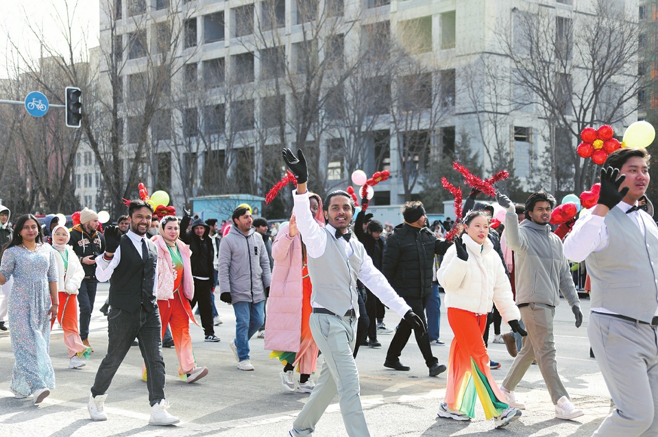 “晋中是座大学城”,当飘扬着21所驻地高校名字的彩旗猎猎进场,驻地高校、留学生方队走来了。2月12日,在晋中市社火表演现场,留学生方队格外亮眼。