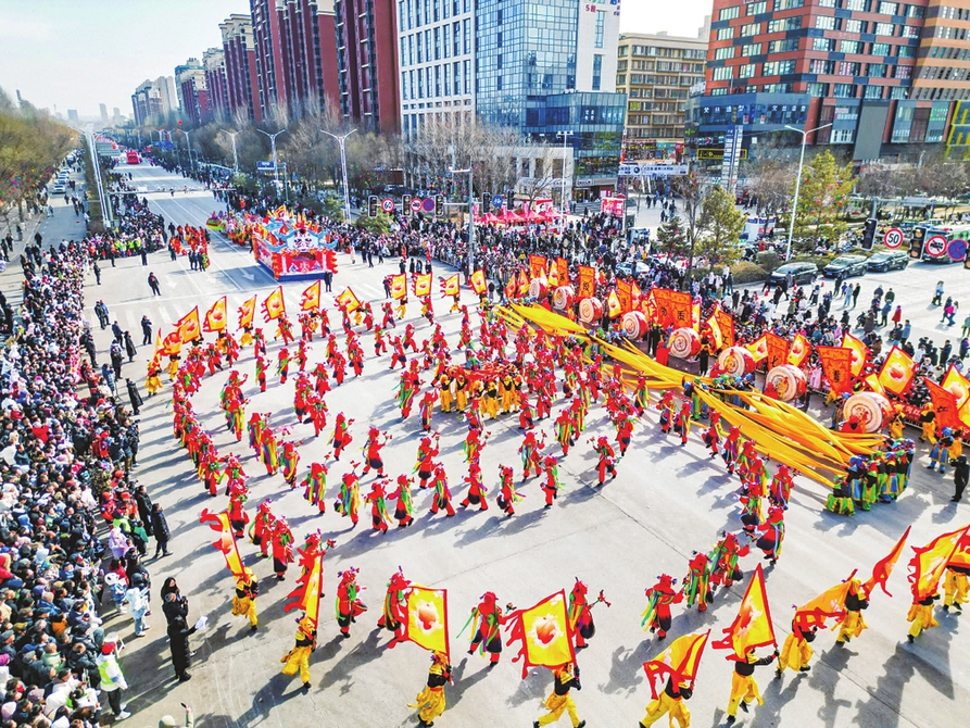 2月12日,晋中市在市城区举行社火会演。 张浩亮摄