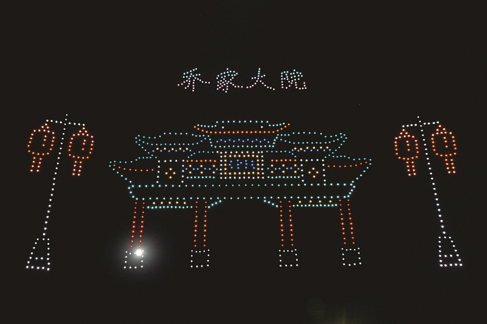 祁县元宵节无人机表演。 张钰佳摄