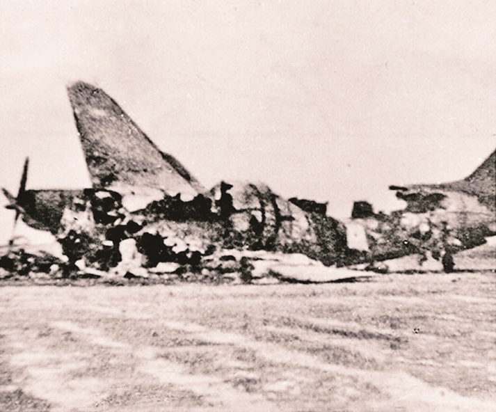 夜袭阳明堡战斗中被炸毁的敌机。资料图片