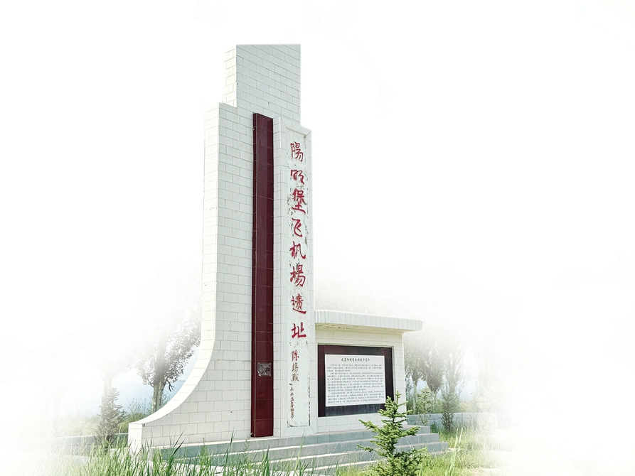 经过了门前繁花盛开的人家,经过了一排排西瓜大棚,再途经比人还高的玉米地,终于在无边青纱帐中,一座纪念碑骤然映入眼帘——阳明堡飞机场遗址到了。