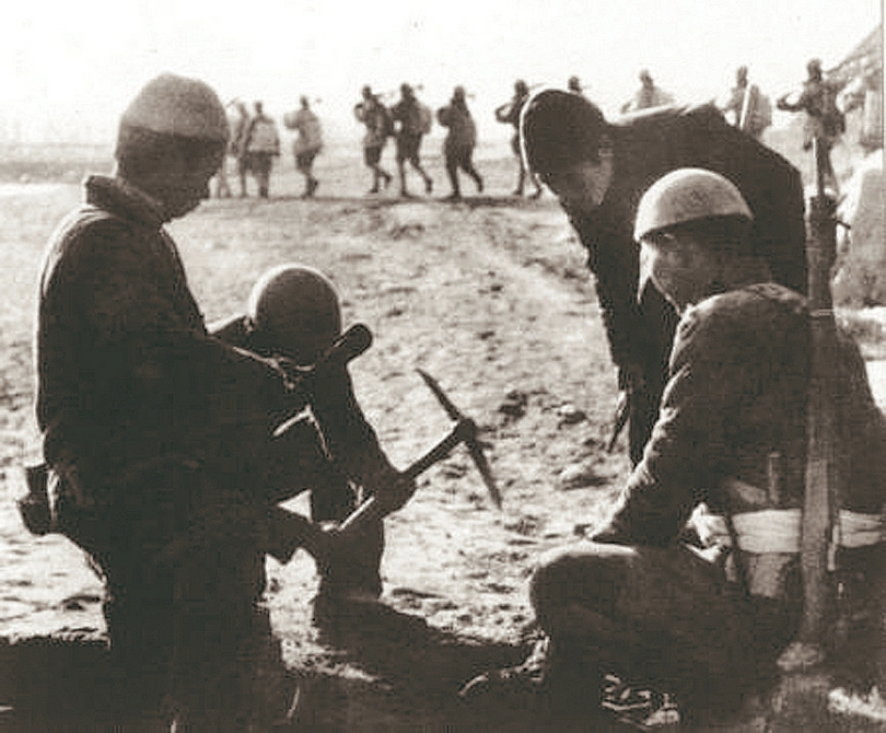 民兵游击队在埋设地雷。