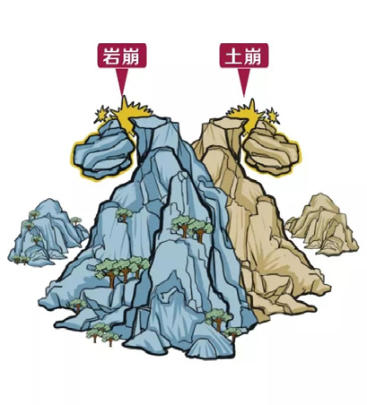 崩塌是陡坡上被裂缝分割的岩土体,因其下部软弱空虚、折断压碎或局部滑动,失去稳定性,突然脱离母体向下倾倒、翻滚的地质现象。简单地说,就是陡坡上塌下来石头或土体。