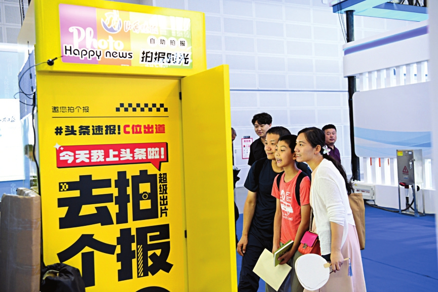 观展市民在《山西晚报》自助拍报机前留下美好瞬间。
