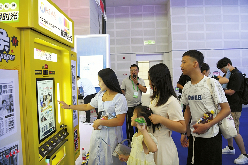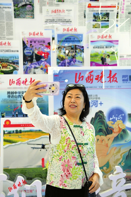 现场,多元体验项目让观展者沉浸式感受山西文化魅力。萌趣的山西晚报·山河+头条拍照机,可让参观者“登上”报纸头版;机器人记者、山西日报创刊号印刷体验区,展现“文化+科技”与传媒历史的碰撞;山河文创、古韵三晋文创卡牌等产品,将三晋文化浓缩为可触摸、可收藏的“掌心记忆”。累了,参观者可以在这里歇歇脚,喝杯小米咖啡、看看报纸、体验拓印,在轻松的氛围中收获文化体验。