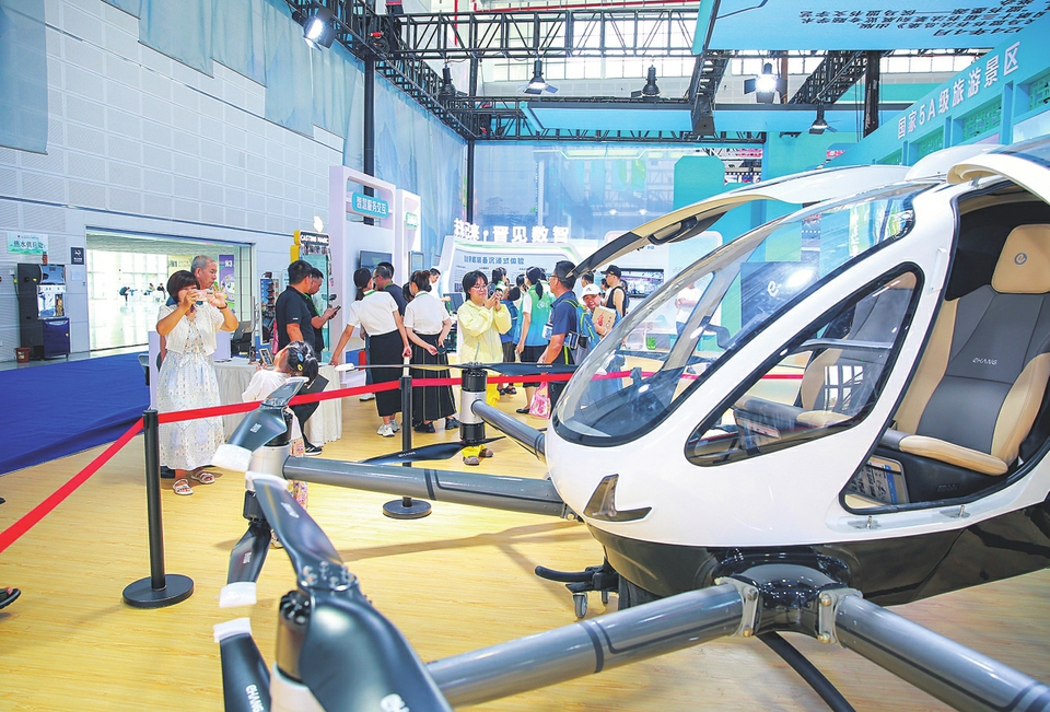 在省文旅厅展厅,无人驾驶飞机受到观展者青睐。本报记者王昕摄