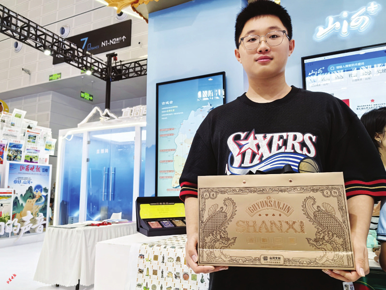 在第七届山西文化产业博览交易会上,山西日报传媒集团展厅内人头攒动,“古韵三晋”的文创卡牌成为展会的“爆款”,吸引了不少市民和游客驻足购买。连日来,不少市民专程赶到展会现场,只为一睹这套文创卡牌的风采,更有甚者一次性购买了十几套,场面十分火爆。