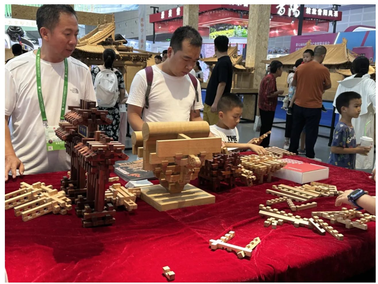 山西晟龙木雕模型艺术有限公司总经理张艳峰表示:这已经是他第7次参加文博会。这些年,古建模型消费群体日趋年轻化,这次,他们创新推出了“古建带回家”拼装系列文创产品,并在现场设置了榫卯拼装体验区,不仅受到观众青睐,也收获了大量合作订单。