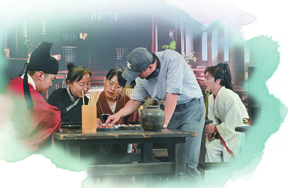 8月25日,临汾展区,微短剧拍摄工作现场。本报记者范文静摄