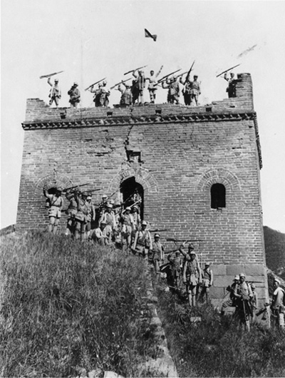 百团大战相关历史图片。图为百团大战中攻破河北涞源东团堡后欢呼胜利的八路军战士。中国人民抗日战争纪念馆供图