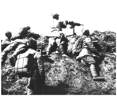 百团大战相关历史图片。图为狮脑山战斗中八路军的机枪阵地。百团大战纪念馆供图
