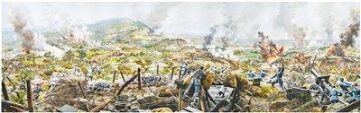 百团大战纪念馆内还原的“鏖战狮脑山”场景。卢鹏宇摄
