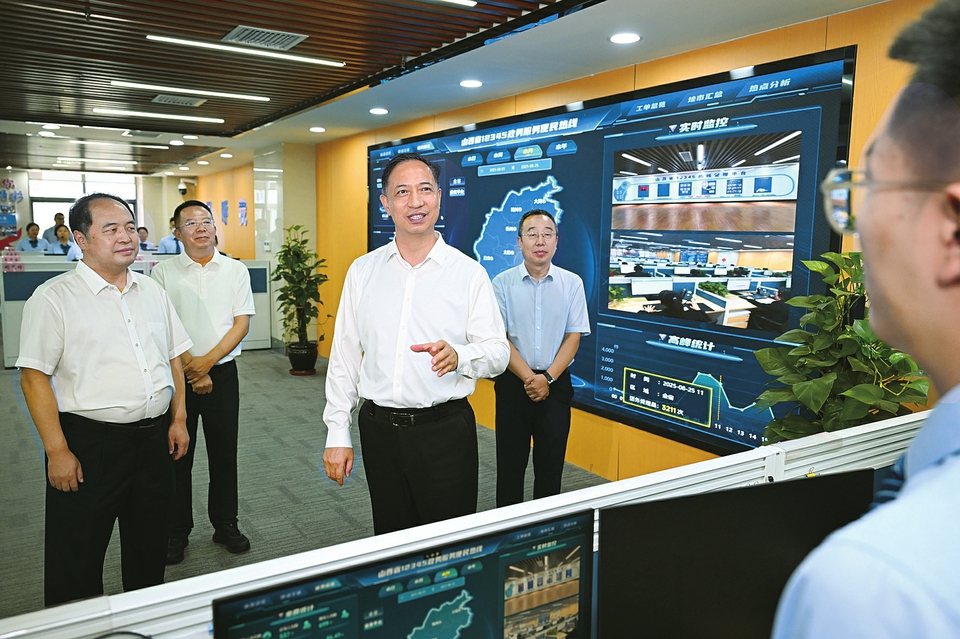 八月二十五日,省长卢东亮来到省政务服务中心,听取全省12345热线运行介绍,与工作人员交流,了解热线工单转办督办情况。本报记者阮洋摄