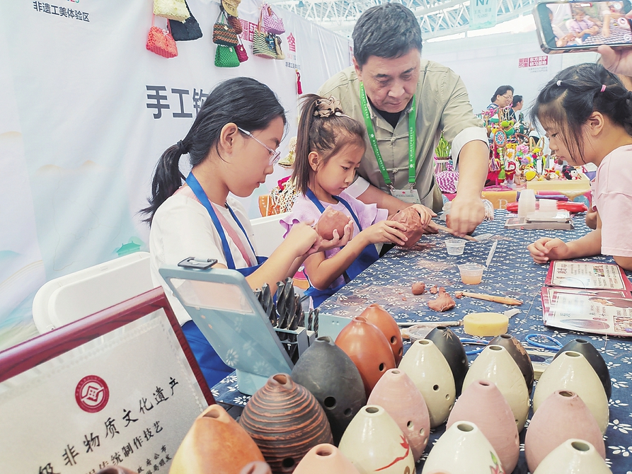 小朋友现场体验非遗技艺。 本报记者王佳摄