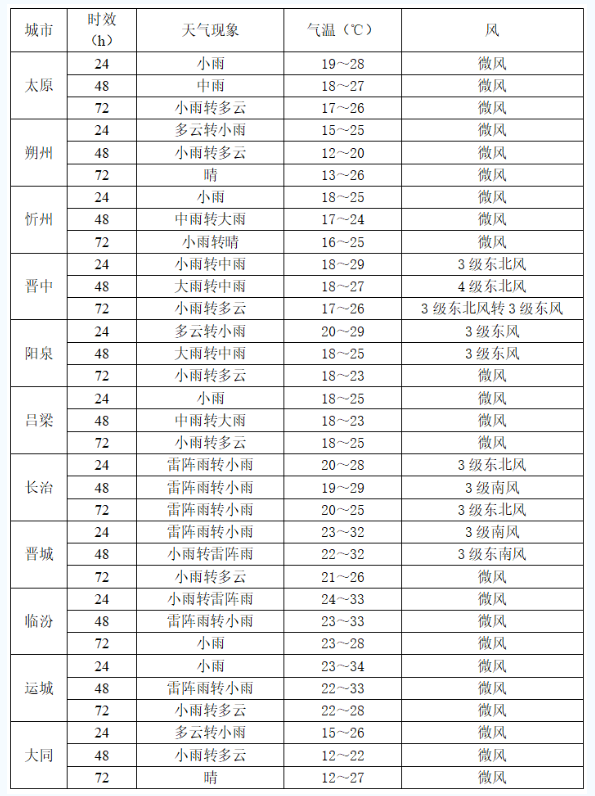 全省天气概览 未来三天,受天气系统影响,我省将迎来一轮阵雨、雷阵雨天气,部分地区雨势较强,并可能伴有短时强降雨和雷暴大风,请大家注意防范! 今天下午到夜间 01 今天下午到夜间:全省多云转阴,大部分地区有阵雨或雷雨,中部局部和南部地区雨量可达中雨,中部个别地方甚至有大雨!雷雨时可能伴随短时强降水和雷暴大风,出门务必注意安全。 气温方面:北部和山区最高22-28度,中南部其他地区29-33度;夜间北部和山区最低13-18度,中南部其他地区18-24度。