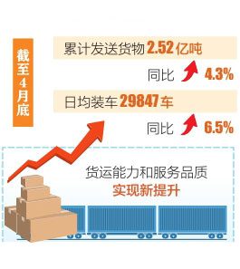 本报讯(记者张毅)今年以来,国铁太原局进一步优化货物列车开行结构,积极挖潜提效,助力铁路货运向现代物流转型发展、降低全社会物流成本。截至4月底,累计发送货物2.52亿吨,同比增长4.3%;日均装车29847车,同比增长6.5%,货运能力和服务品质实现新提升。