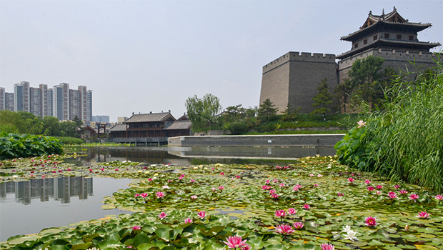 大同:护城河上花争艳