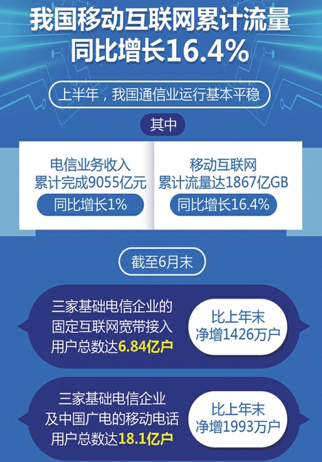【数说中国】上半年 我国移动互联网累计流量同比增长16.4%