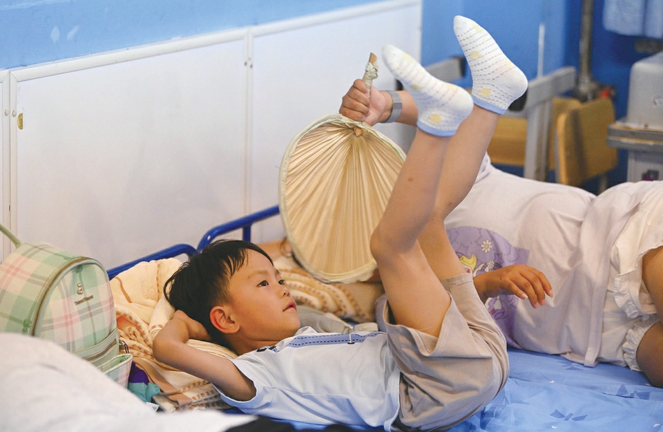 7月28日,集中安置群众在天津市蓟州区下营镇初级中学休息。