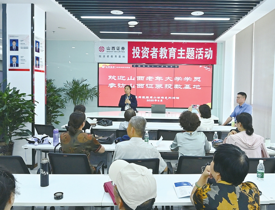 山西老年大学学员走进山西证券投教基地,参与金融知识普及活动。