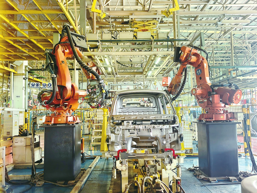 冲压车间里,经拉延、修边、冲孔、成型等工序打磨的产品,流转至焊装环节。41台焊接机器人挥舞机械臂,点焊、弧焊、螺柱焊自动化率达50%,高效运转提升整条生产线效率。涂装车间内,透过玻璃幕墙可见电泳液无死角渗透车身,如同为其披上高抗腐“防护服”。总装车间中,车身的“经络”“骨骼”“皮肤”“血液”经标准流程精准组装,最终形成各式车型。