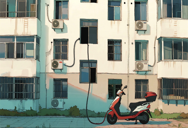 误区:从高楼窗口拉电线给楼下电动车充电。