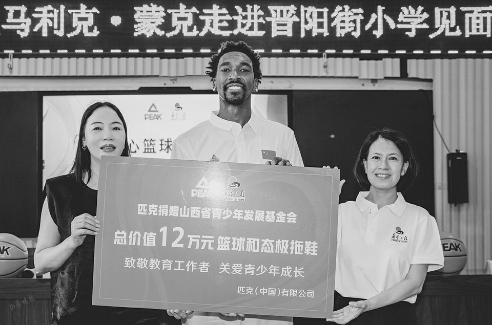 阳光明媚的校园里,掌声与欢笑声交织成温暖的乐章。7月25日,美国NBA国王队球星马利克·蒙克现身太原市晋阳街小学,开展“‘篮球筑梦星耀校园’篮球明星进校园”主题公益活动。活动中蒙克加入篮球比赛,与小球员们展开亲密互动。在捐赠仪式现场,匹克(中国)有限公司向山西省青基会捐赠价值12万元的体育用品,定向用于晋阳街小学等进城务工人员子女学校,助力孩子们强健体魄,勇敢追梦。