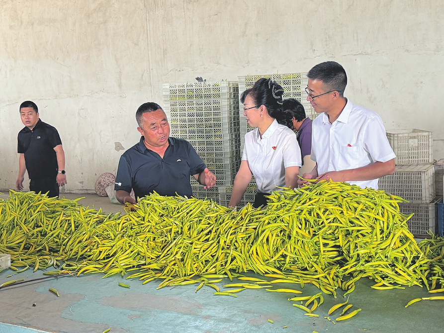 图为邮储银行大同市分行工作人员正在黄花加工车间了解情况。本报记者刘迎春摄