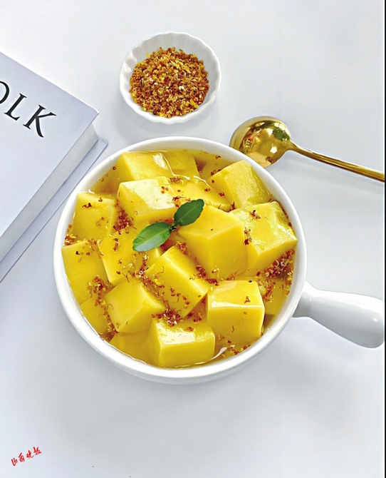 把甜玉米用擦丝或者擦泥的工具擦成玉米糊,再用纱布把玉米汁过滤一遍,倒在奶锅里,加入白糖和白凉粉搅匀;煮开之后继续煮1-2分钟关火,中间要时不时搅拌;放凉至7080度左右,倒在耐高温的保鲜盒里;常温放凉然后转冷藏至完全凝固;凝固之后切成小块,倒在盘子里,淋上桂花蜜就可以吃了。