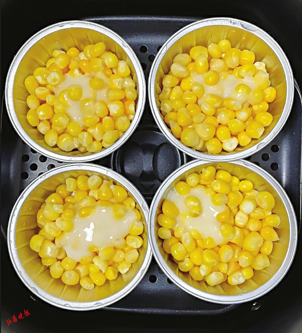 将玉米粒放入锅中煮熟,然后捞出控干水分。将煮好的玉米粒倒入锡纸碗中。挤入适量炼乳,搅拌均匀。撒上一层芝士碎。将准备好的食材放入空气炸锅,160度烤8分钟即可。
