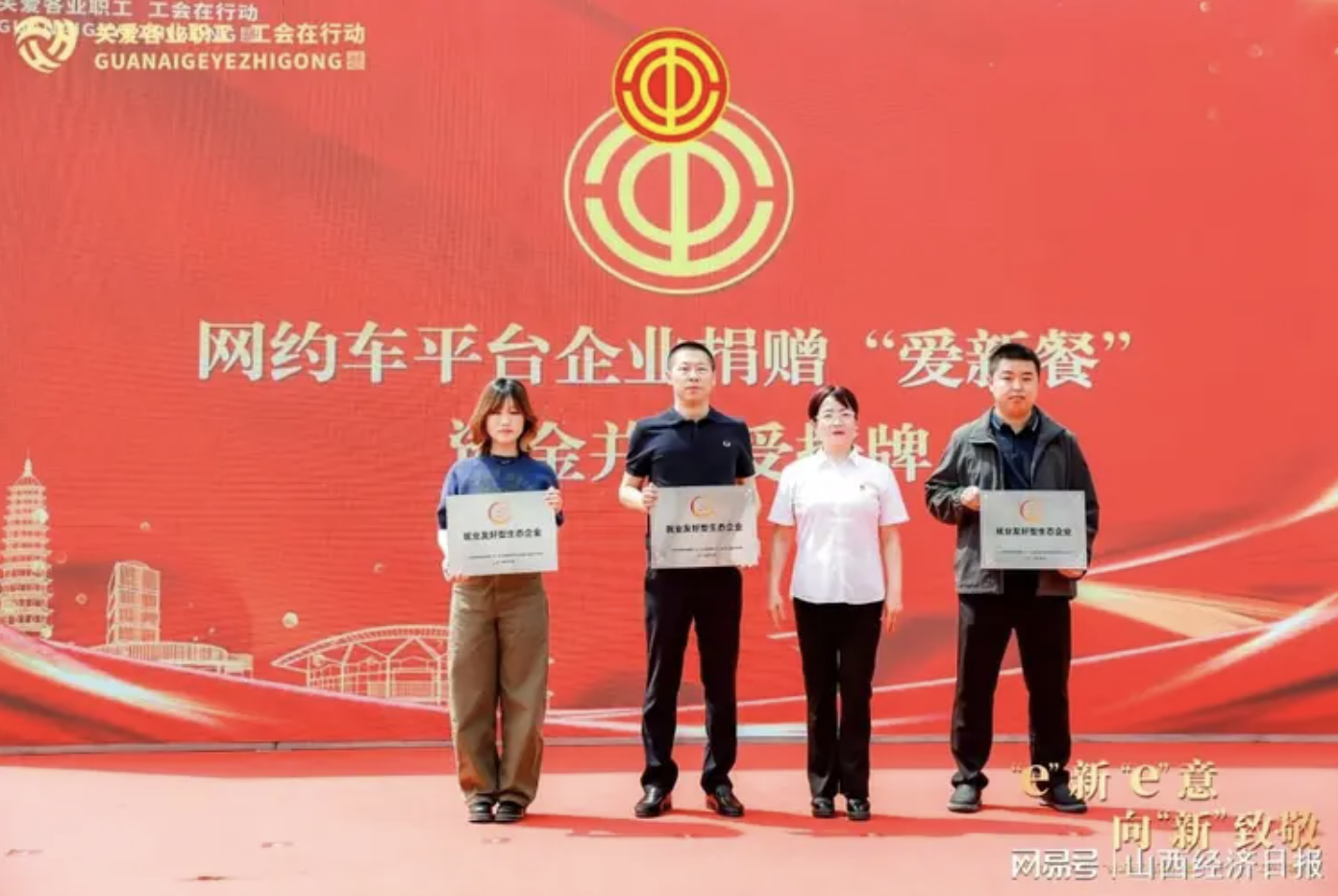 5月15日,在山西省委社会工作部、山西省总工会的指导下,高德联合出行生态企业与山西省财贸轻纺烟草工会和饿了么共同主办了山西新就业群体“爱新餐”拓展升级暨“四个一”工程启动大会,通过发挥“政府+平台+行业”叠加效应,联动更多爱心商家资源,将“一餐饭”升级为“建一个家、供一餐饭、搭一张床、配一个电池”,进一步拓展新就业群体友好场景,增强他们的获得感、幸福感。 会上,山西省饭店业商会邀请了100家爱心商家成立爱心商家联盟,每家每天为新就业人群提供不低于100份爱心餐食,为新就业群体提供优质的餐饮福利。