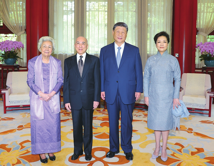 习近平热烈欢迎西哈莫尼国王和莫尼列太后再次来华,也欢迎西哈莫尼国王出席中国人民抗日战争暨世界反法西斯战争胜利80周年纪念活动。习近平表示,今年4月我对柬埔寨进行国事访问,受到国王陛下和柬埔寨人民热情友好接待,至今想起都感到十分亲切。中柬关系历经国际风云考验,结成风雨同舟的铁杆友谊,成为两国人民的宝贵财富,值得双方倍加珍惜。面对变乱交织的国际形势,中柬两国要更加坚定地站在一起,赓续传统友谊,加强团结协作,加快建设新时代全天候中柬命运共同体,为两国人民带来更多福祉。中方坚定支持柬埔寨人民走符合本国国情的发展道路,实现国家长治久安。